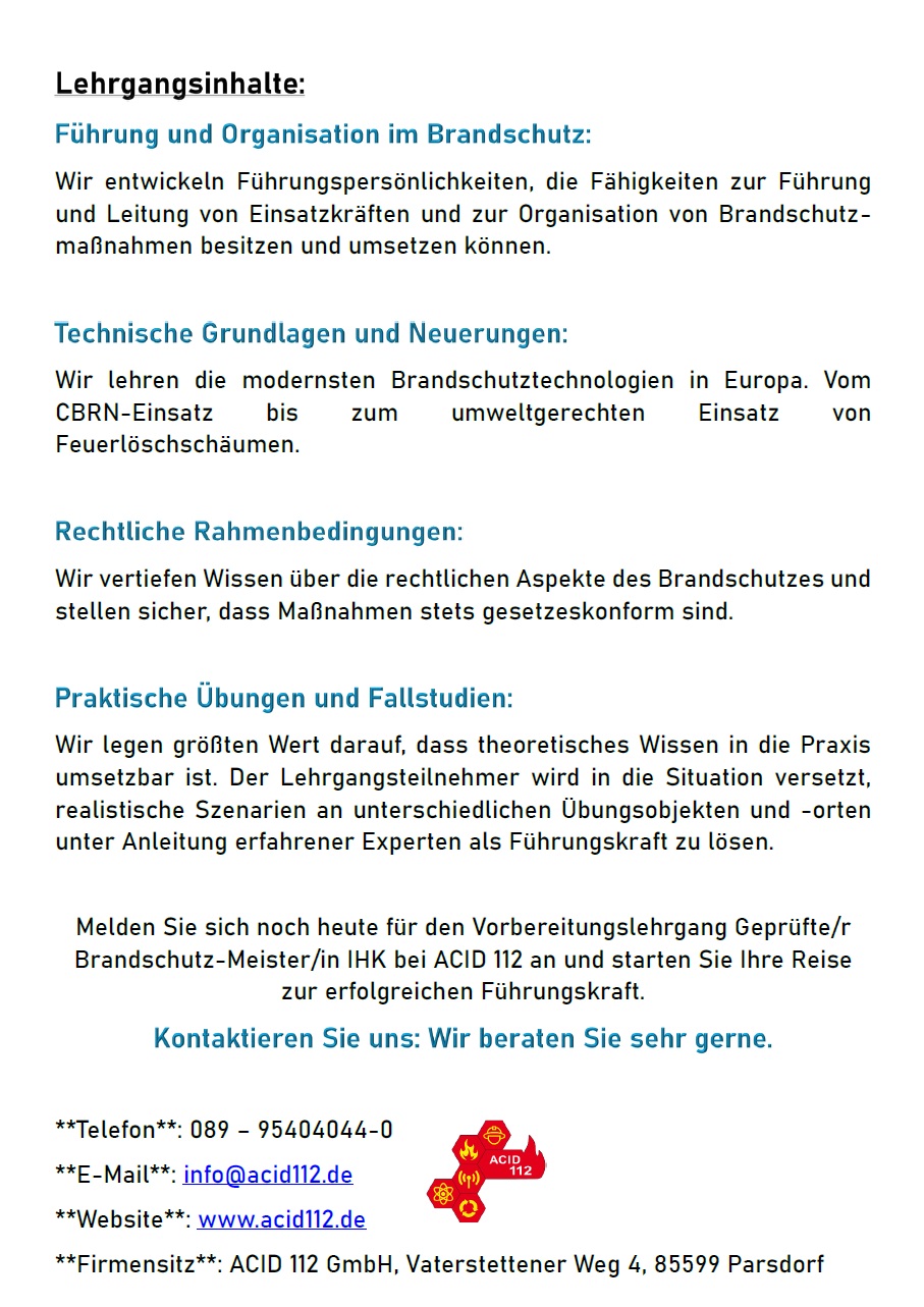 Auftragsdetail: Vorbereitungslehrgang Geprüfte/r Brandschutz-Meister/in IHK